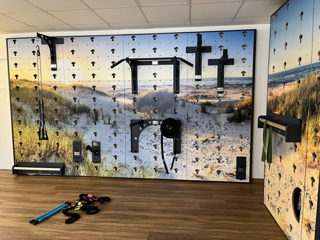 Zum Einsatz kommen dabei EGYM Kraftgeräte für ein sicheres, individuell gesteuertes Muskeltraining, EGYM Smart Flex für ein effektives Beweglichkeits- und Dehnungstraining sowie die Cube Sports Multifunktionswand, die vielseitige Übungen für Kraft, Stabilität und funktionelle Bewegungsabläufe ermöglicht. So verbinden wir Therapie und Training optimal miteinander.